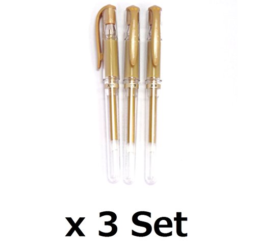 -. Title : 3 Set X Uni-Ball Signo Broad Point Gel Impact Pen - 1.0mm - Gold Ink - Total 9 Pens Set