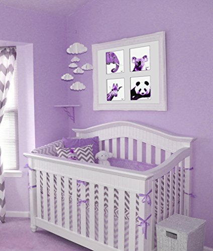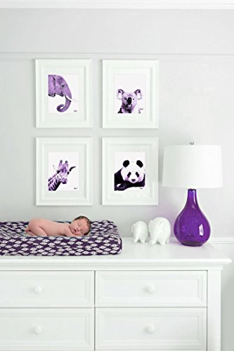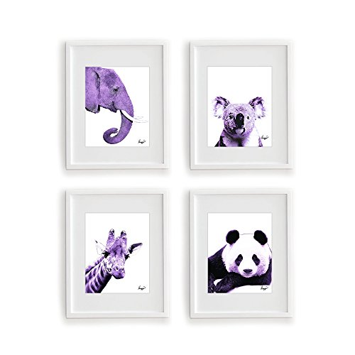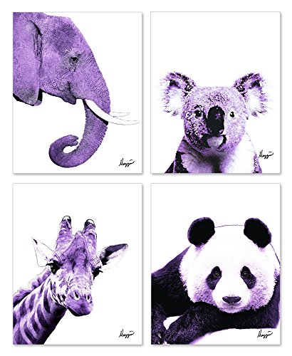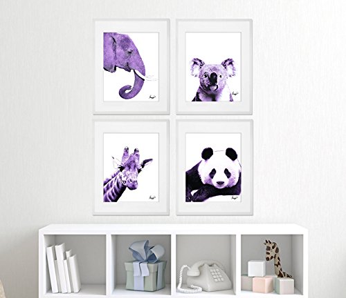 Purple Elephant, Panda, Koala, Giraffe - Purple Animals Color Accent Theme Bundle! Four Stylish 8x10 Wall Decor Prints in a Set. Perfect for Baby's Room, Kids Room & Nursery Decoration!