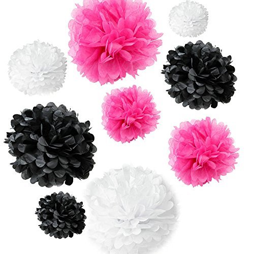 Somnr® Set of 18PCS Mixed White Fuchsia Black Tissue Pom Poms Paper Flower Wedding Pompoms Birthday Party Bridal Shower Favor Decoration