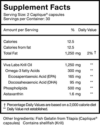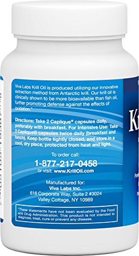 VIVA LABS KRILL OIL: 100% PURE ANTARCTIC KRILL OIL - HIGHEST LEVELS OF OMEGA-3S IN THE INDUSTRY, 1250MG/SERVING, 60 CAPLIQUES