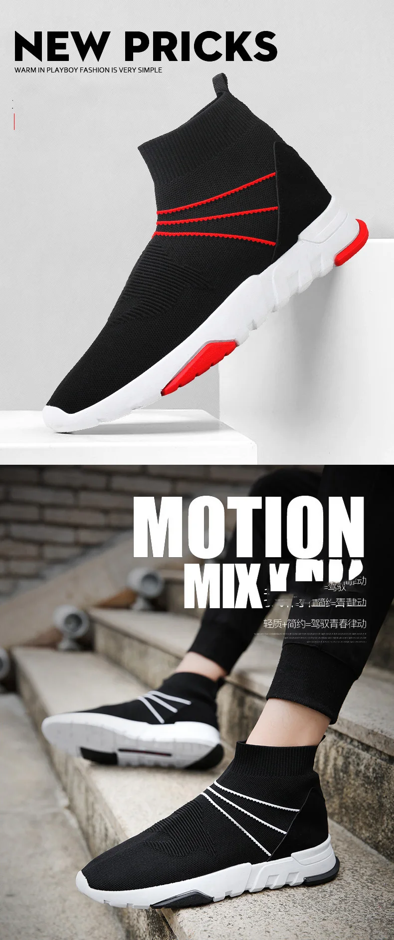 Fashion sock high top sneakers:zapatos hombre