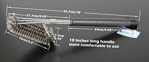 - OPTIMAL HANDLE LENGTH. Through extensive testing we have found 18 inches to be the best length for a grill brush. Long enough that your hand wont get burnt, but 12 inchs short enough that you retain excellent leverage and control while cleaning your grate-best set you ever have