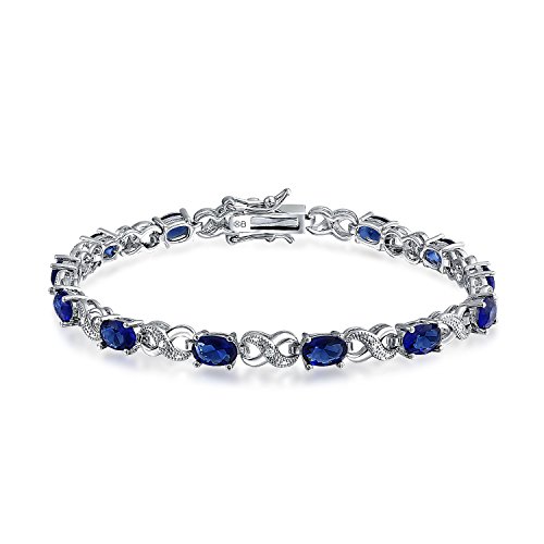 -. Feature : 無限大ブレスレット / ロジウムめっきベース / 楕円形カットサファイアカラーCZ / 長さ7インチ / グラム重さ6.7