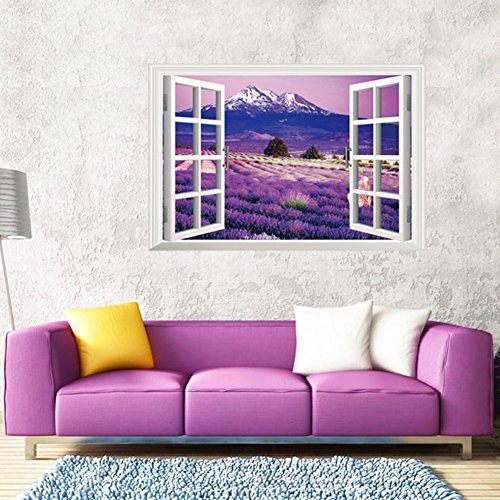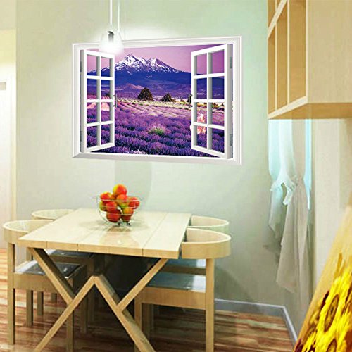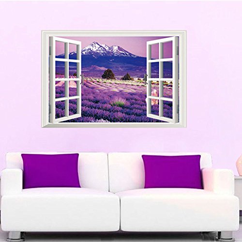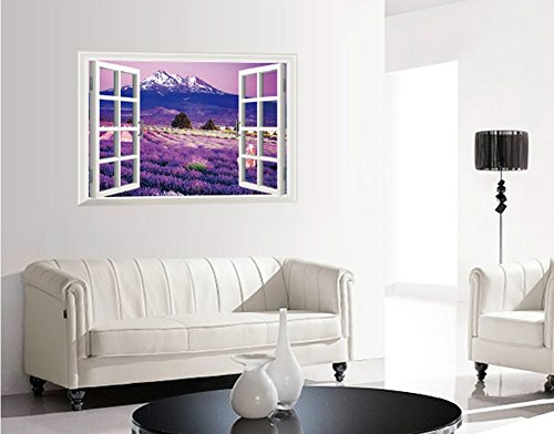 -. Title : Removable Wall Stickers Murals Decor 3D Window Vinyl Wall Decals (Provence Lavender Town,36"x 24")