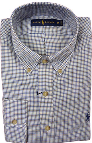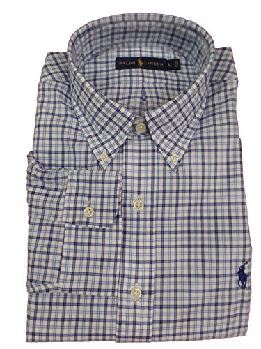 Ralph Lauren Men's Plaid Pony Logo Button-Down Shirt (L, White/Blue Multi)