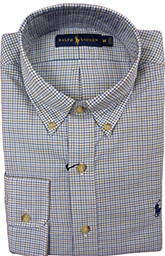 Ralph Lauren Men's Standard Fit Twill Pony Logo Button-Down Shirt (M, Brown/Blue)