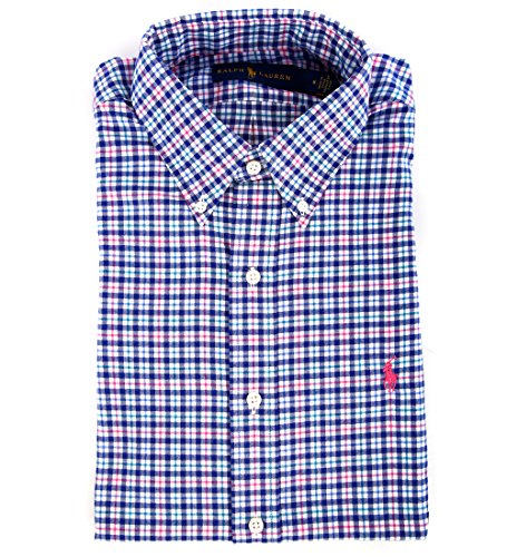 Ralph Lauren Men's Standard Fit Twill Pony Logo Button-Down Shirt (M, Blue/Magenta)
