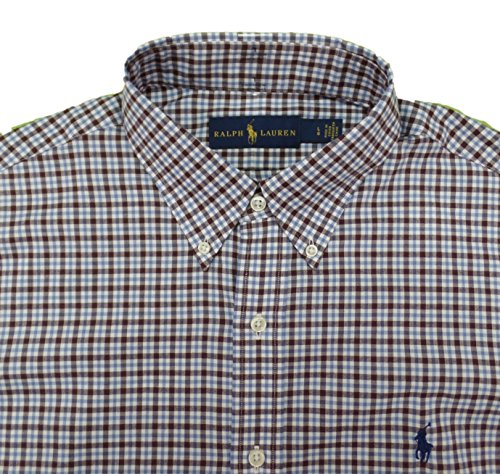 Ralph Lauren Men's Standard Fit Twill Pony Logo Button-Down Shirt (XXL, Brown/Blue)