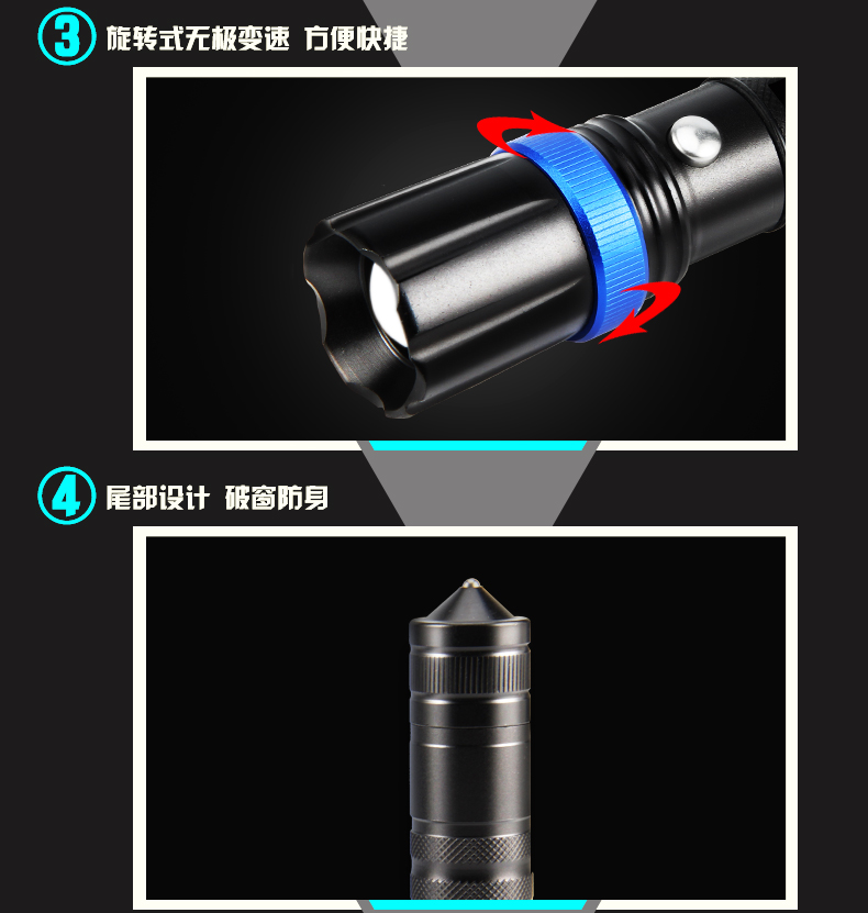2. High-strength aluminum alloy lotus head, self-defense hit the window multi functional.
