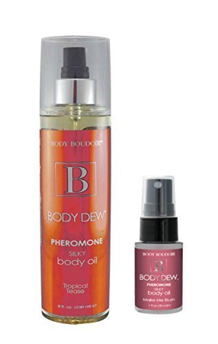 -. Title : Body Boudoir Body Dew Pheromone After Bath Silky Body Oil Mist Moisturizing Tropical Tease 8 Oz + 1oz Make Me Brush Travel Size