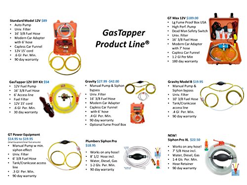 GasTapper (TM) Gravity Model B - Liquid Transfer Gasoline Siphon Pump 9' Feet of Real Fuel Hose - Universal Filter - Made in USA - See All 5 Models - Search for "Gentap" in Amazon Search Bar - (See GasTapper Gravity for version w/modern car adapter)