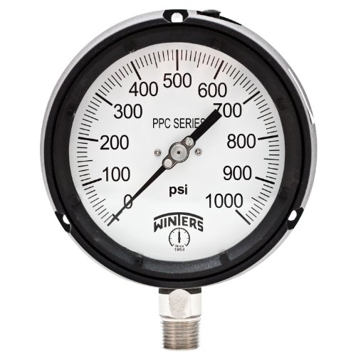 Winters PPC Series Phenolic Single Scale Process Pressure Gauge with Stainless Steel Internals, 0-1000 psi, 4-1/2" Dial Display, +/-0.5% Accuracy, 1/2" NPT Bottom Mount