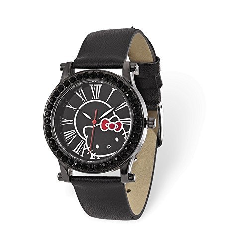 Jewelry Adviser Watches Hello Kitty Black Dial Crystal Bezel Black Faux Leather Watch 시계 [병행수입품]