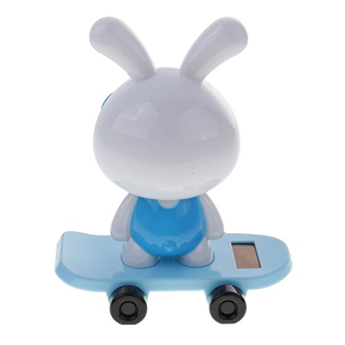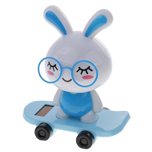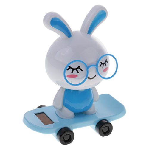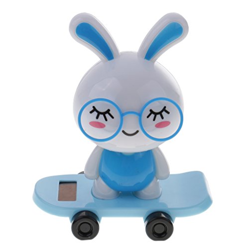 Description: - Powered by the sun or any light source from a panel on its base - Thiscute rabbit doll wearing glasses on skateboard can keep shaking heads,an affordable ornament for your desk, table, balcony or front of car,and etc - It will give you a good mood when you look at it - Perfect gifts for adults and children - Material: Plastic - Color: Blue Size Chart: W x H: Approx 10 x 11.5cm/3.94 x 4.53inch Package Includes: 1 Solar Powered Rabbit Doll Note: Due to the manual measurement, please allow 1-5mm differences in size