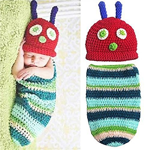 Weitengs Cute Cartoon Caterpillar Style Infant Newborn Baby Girl Boy Crochet Beanie Hat Clothes Baby Photograph Props
