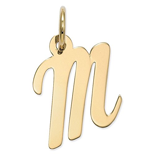 -. Feature : 14k Yellow Gold Small Script Initial M Charm / Millimeter Measurement Comparisons / In Words to remember every 25MM equals 1-inch and 12.5MM equals 1/2-inch / Dime=17MM,Penny= 19MM,Nickel= 21MM,Quarter= 24MM / For international orders customers are responsible for all custom fees.
