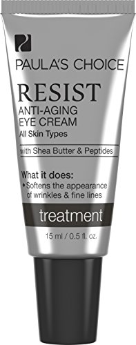 RESIST Anti-Aging Cream is an extremely rich formula that focuses its rare blend of antioxidants and soothing hydrating ingredients to improve the appearance of shadows around the eyes, minimize the appearance of wrinkles, alleviate dryness, and help boost suppleness with prolonged hydration that lasts all night long. It is an extremely gentle, exquisitely rich eye-area solution that visibly improves multiple signs of aging, including fine lines, wrinkles, loss of firmness, under-eye shadows, and puffiness. Shea butter and skin-replenishing ingredients are joined with antioxidants chosen specifically to improve the look of dull skin and signs of aging around the eye area while significantly boosting hydration and reinforcing a supple, firm feel. All Paula's Choice products are 100% fragrance free, clinically proven to be non-irritating, and never tested on animals.Feature