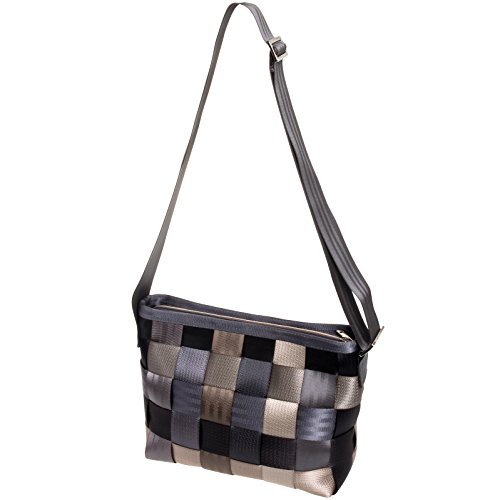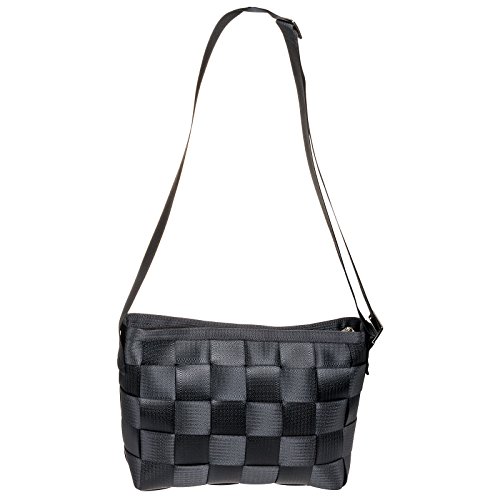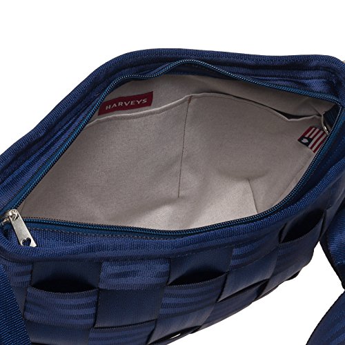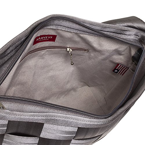 -. Feature : Made from seatbelts / Classic woven design / Wear as a shoulder purse or crossbody bag / Includes Harveys monogrammed silver interior lining / Measures 11.5" x 9.5"x 3.75" w/ adjustable shoulder strap
