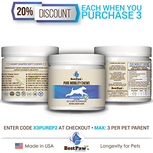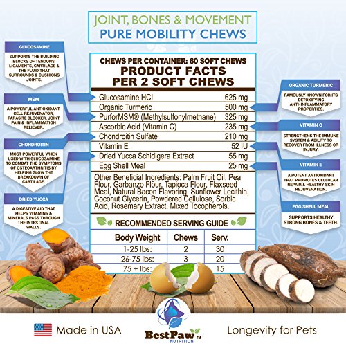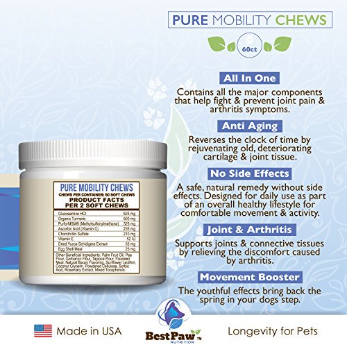Brand : Pure Paw Nutrition Item model num : Pure-Mobility-Chews-60-Count MPN(PartNumber) : Pure-Mobility-Chews-60-Count Package Dimensions(LxWxH) : 6x6x6cm ; 68 g