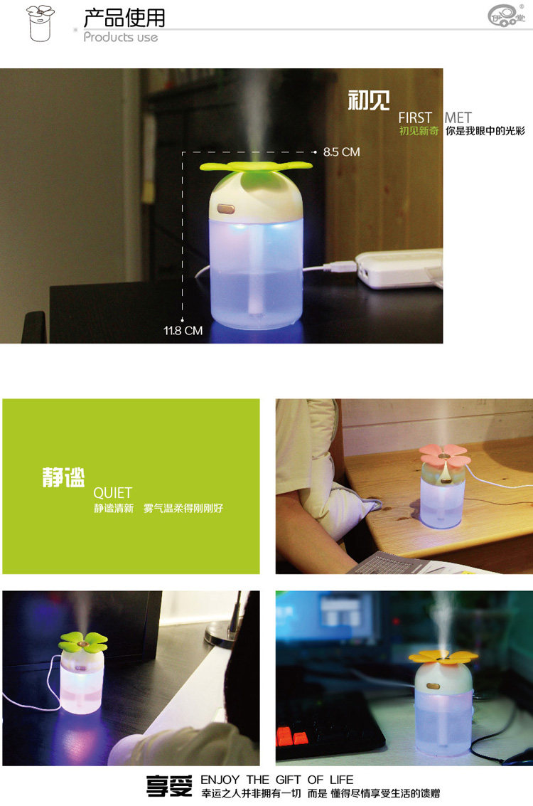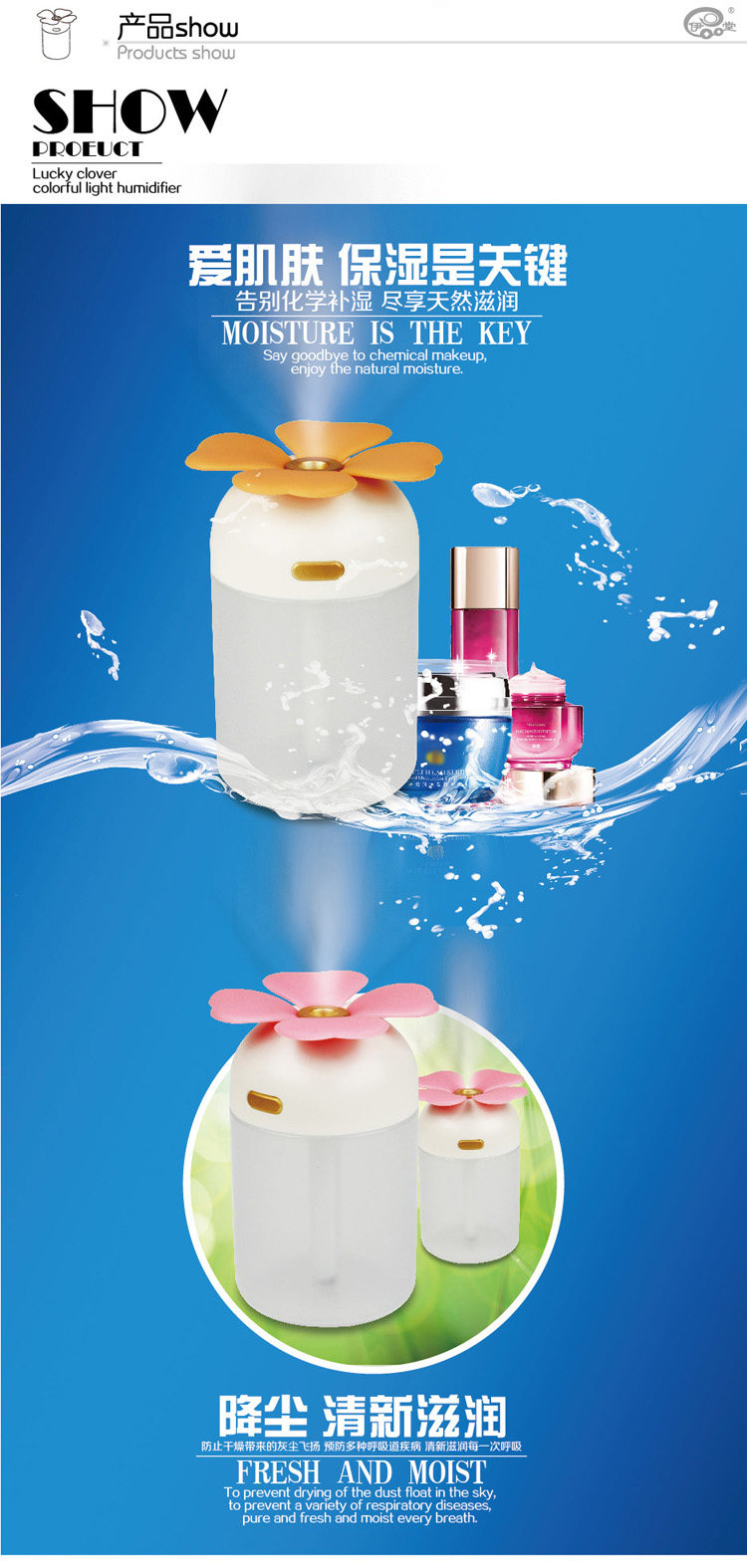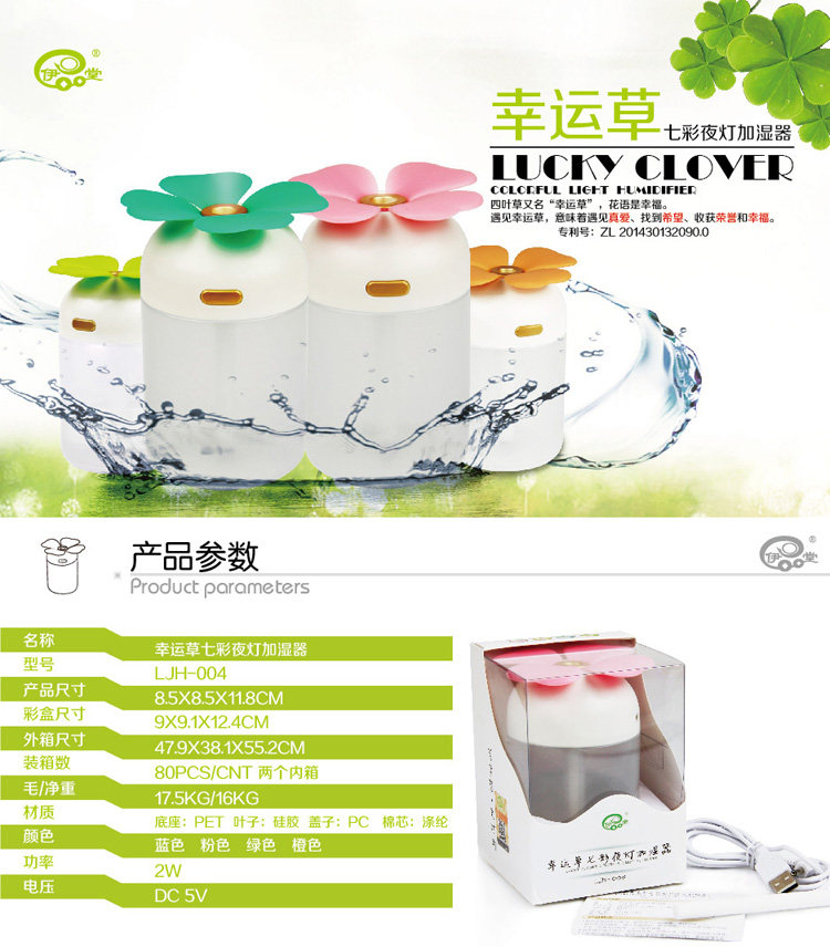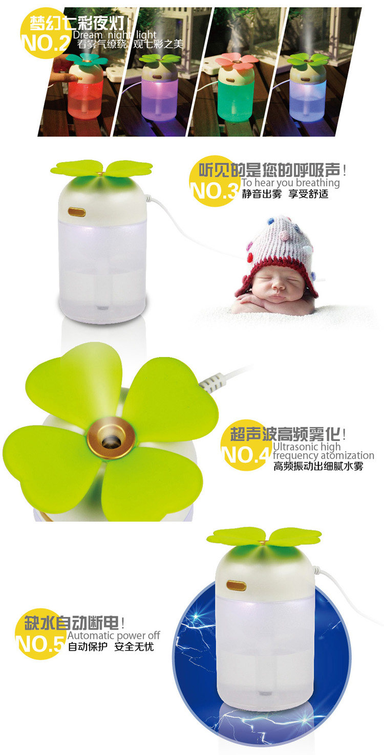 Clover USB humidifier Colorful night riddles your home office/car humidifier muted New Year gift ideas Small mini humidifier water is colorful nightlights