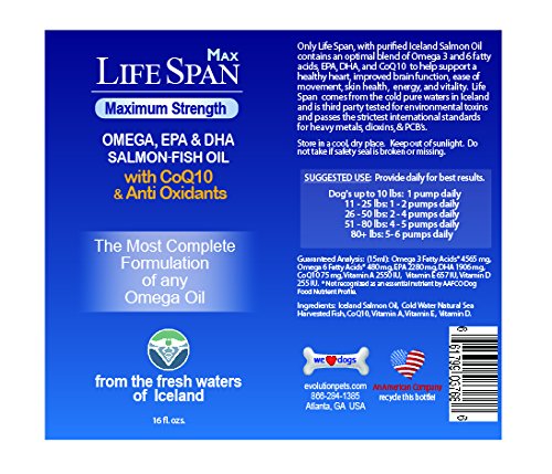 -. Title : LifeSpan Maximum Strength Salmon Oil for Dogs with CoQ10 & Antioxidants - 16 oz