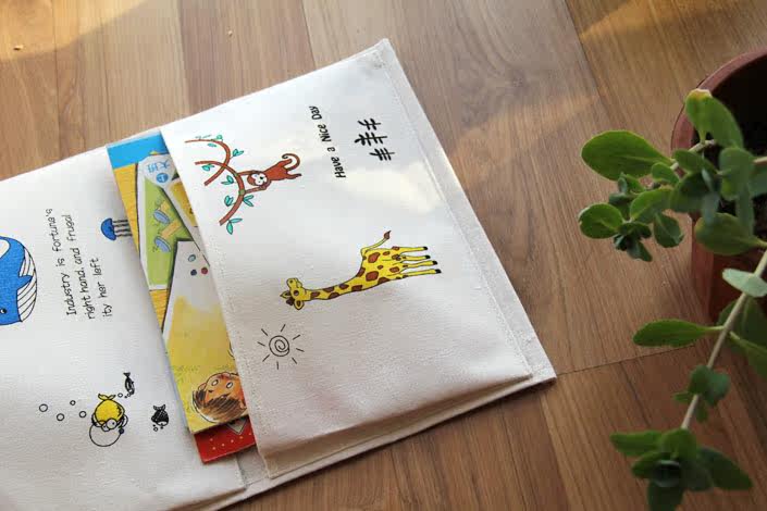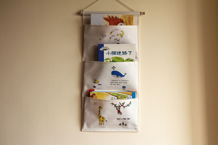 卡通图书挂袋收纳袋幼儿园装饰挂兜棉麻zakka创意环保整理袋墙上
