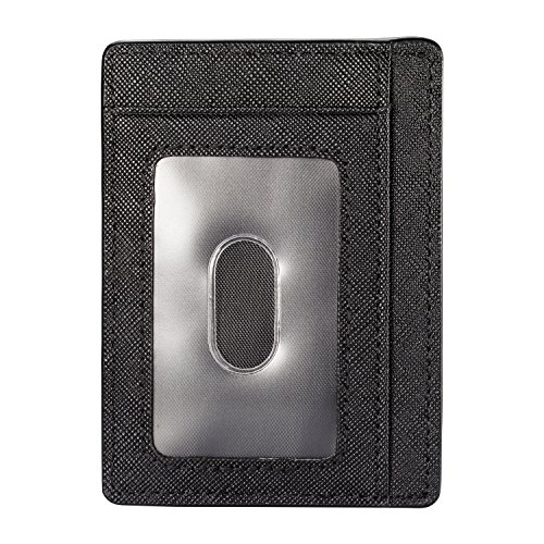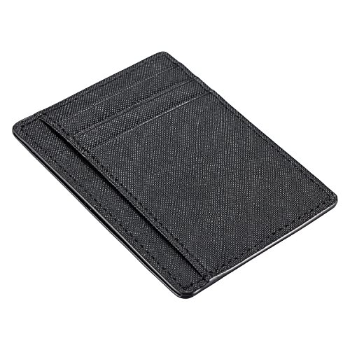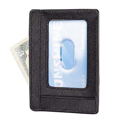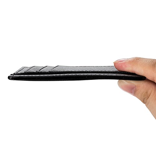 -. Feature : SUPER MINIMALIST & SLIM: only 0.12" thick, sizing 3.3" X 4.1" X 0.12"?extremely convenient to be carried around in your front or back pocket. / 100% GENUINE LEATHER: soft and durable. / RFID BLOCKING TESTED & APPROVED BY INDEPENDENT LAB TESTS. Our wallets have been tested for 13.56 MHz Frequency in which our credit cards, debit cards, driver license and ID cards operate. PLEASE BE NOTED THAT the signal of some ID badge, access cards and hotel room cards which operates in 125 KHz, can not be blocked by this wallet. / ENHANCES PERSONAL SECURITY: We leverage top RFID technology to block RFID signals used to electronically scan your wallet as someone passes by unnoticed. This keeps your vital information in driver license, debit cards and credit cards from being stolen. / PREMIUM FUNCTIONALITY: Our RFID wallet not only offers security, it's also very functional. It features 6 card slots for you to place your most frequently used cards.