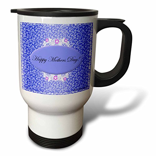 3dRose Dark Blue and White Floral Mothers Day Stainless Steel Travel Mug, 14-Ounce