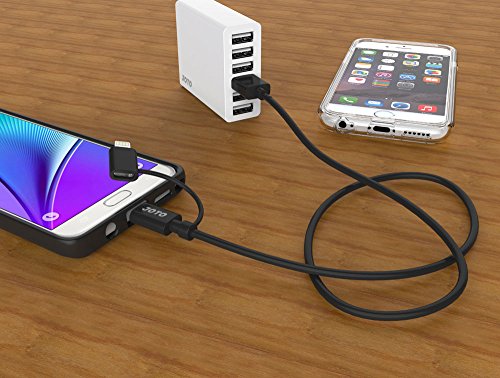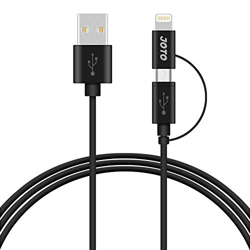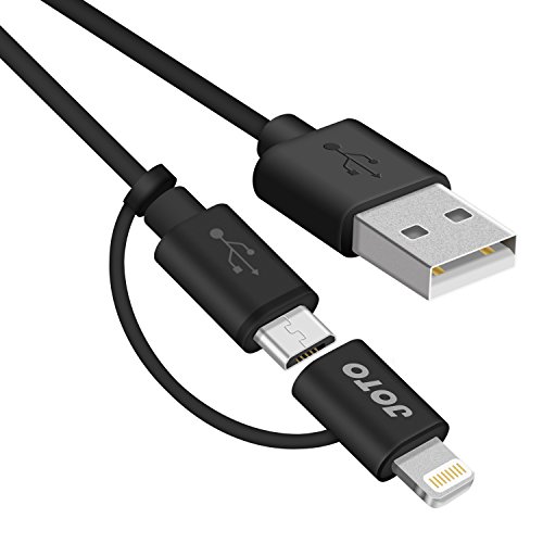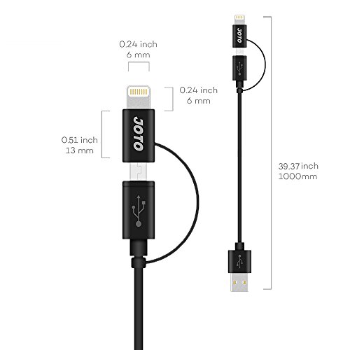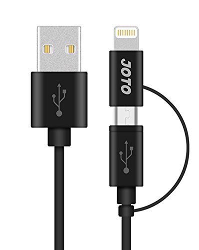 JOTO Lightning Cable Duo 2-in-1 with Lightning and micro USB connector (3.3ft MFi) Sync and Charging Cable for iPhone iPad Samsung android devices (Black)