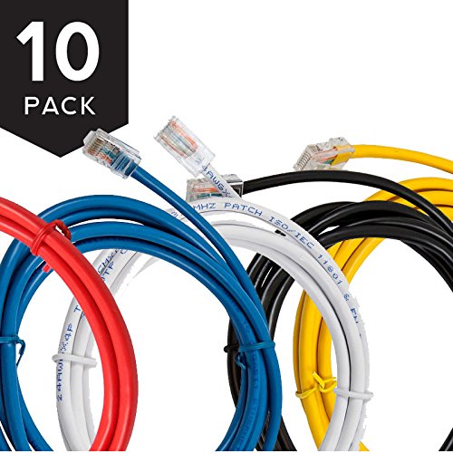 Includes: 2x Black, 2x Blue, 2x Red, 2x White, 2x Yellow. Cat6 Ethernet patch cable made with UL Listed CM Type PVC Jacket for high bandwidth of up to 550 MHz. 24 AWG stranded bare copper wire and a 50-micron gold plated body RJ45 plug provides universal connectivity.