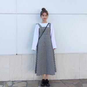ジャンパースカートデザインだから、Tシャツでもブラウスでもカーディガンでも簡単にあわせられますね☆