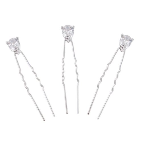 EVER FAITH Bridal Silver-Tone Leaf Teardrop Clear CZ Zircon Austrian Crystal Hair Pin Set of 3
