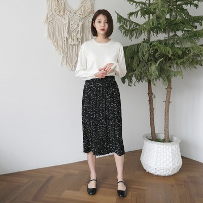 웨이스트 밴딩과 무릎까지 오는 안감이 덧대어져 편안한 착용이 가능하며 내추럴하게 주름진 디자인으로 바디라인을 슬림하게 표현해 줍니다. 루즈 핏의 니트나 탑과 매칭해 주시면 한층 더 페미닌한 무드를 즐기실 수 있습니다. 아이보리 컬러 특성상 비침이 있을 수 있으니 이 점 유의 바랍니다!