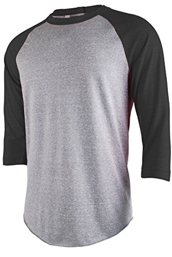 TL Men's Basic 3/4 Sleeve Baseball Top Fitted Tri-blend Raglan T-Shirt LTGREY_BLACK M