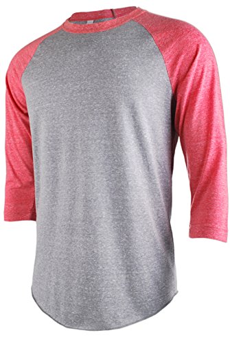 TL Men's Basic 3/4 Sleeve Baseball Top Fitted Tri-blend Raglan T-Shirt LTGREY_RED M