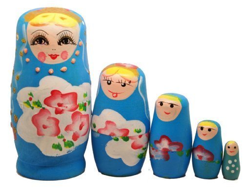 -. Title : Blue Set of 5 Cutie Nesting Dolls Matryoshka Madness Russian Doll