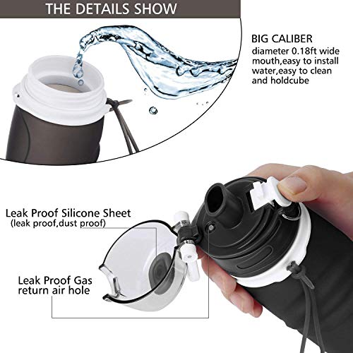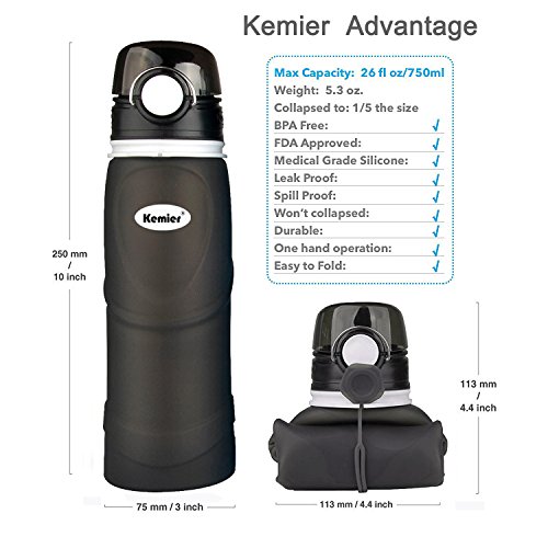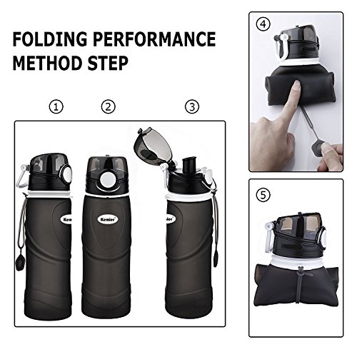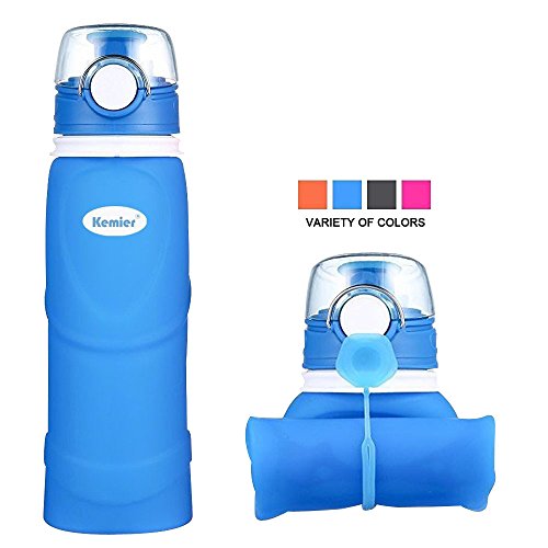 Kemier Collapsible Silicone Water Bottles ??Medical Grade , BPA Free , FDA Approved ??Can Roll up ,Light Weight ??No stains, taste, or smells ??Can be collapsed to 1/5 of its original size ??when participating in outdoor sports,can be hung on the device or bag ??when go out to play,it can be folded up and placed in the bag or pocket to save space.? ??Wide mouth design, easy to clean, also dishwasher safe (top rack) ??Eco-friendly and Re-usable ??Metal lock ring prevents the bottle from being opened accidentally. Septification : Material: Medical grade BPA-free silica gel Size (inflated): 75 ?¡§¡é 75 ?¡§¡é 250 mm Capacity: 750 ml Weight: 155 g Durable Temperature: -40?? - 100?? Color: Transparent Blue, Transparent Pink,Cool Black . Package : 1 * Water Bottle Notes : 1.Please use boiling water to disinfect before use the bottle, and put it in a clean place . 2.Tighten the cap and dust cover when using it to avoid the liquid leakage when squeezing the bottle. 3.Rolls up for easy storage,ready for the next use. 4.Dishwasher safe. 5.Can be used as a hot or cold compress ,Freezer safe,fill and freeze. 6.Heart resistant,the bottle body resistant to temperature from -60-200,the bottle cap resistant to temperature from -40-120 .Click the "Add to Cart" button above to get your collapsible water bottle now!Feature