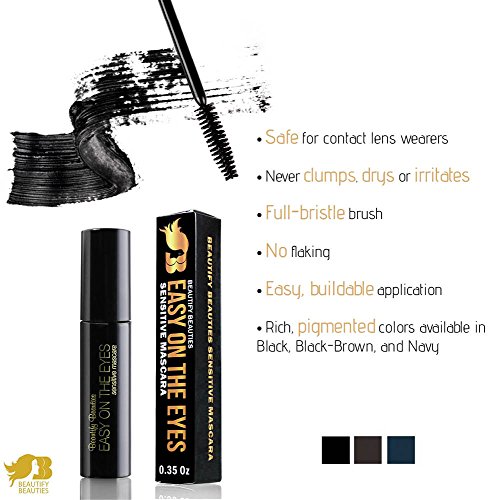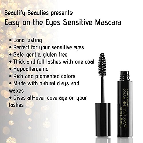 EASY ON THE EYES Sensitive Eye Mascara, Black (0.35 oz) By Beautify Beauties. Gives You Natural Looking Lashes. Non irritating, Great for Sensitive Eyes,...