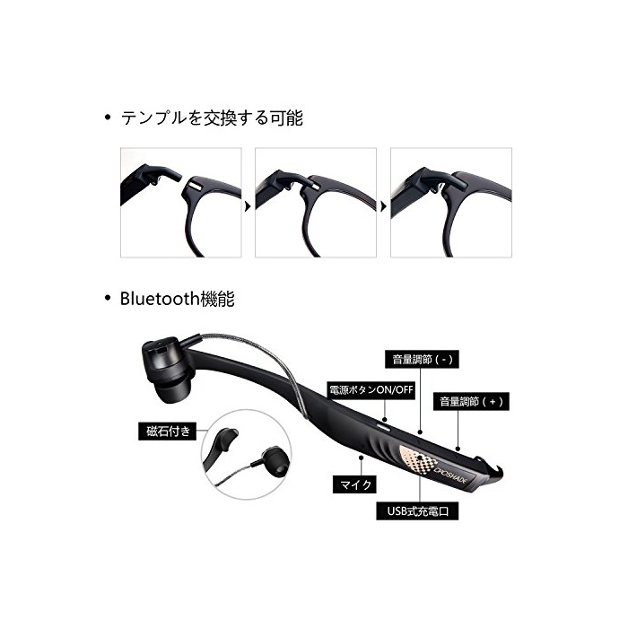 원본상품명: proshade スマトグラス&Bluetoothヘッドセット Bluetooth 4.0 イヤホン片耳 通話機能 交換テンプル付き Android/ iOSスマトフォンなど