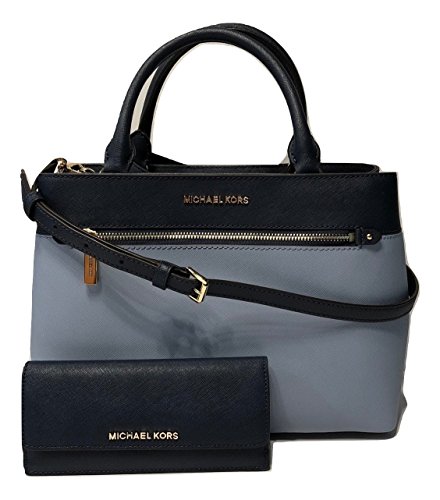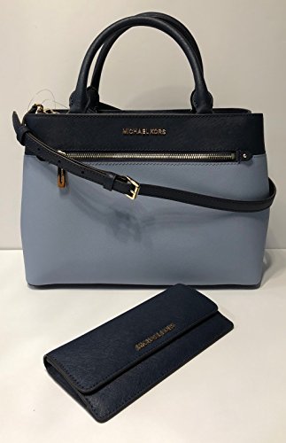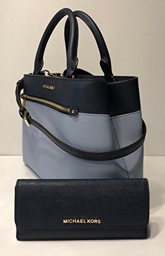 Michael Kors MICHAEL Michael Kors Hailee MD Satchel bundled with Jet Set Travel Flat Wallet (Pale Blue/Navy)