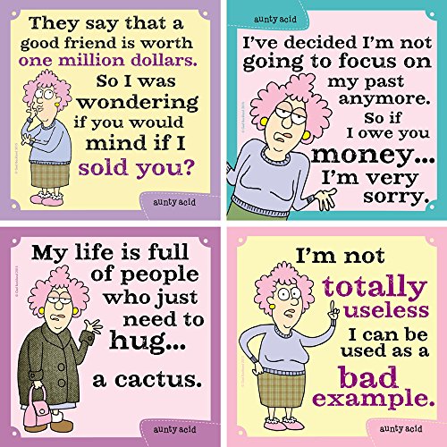 Tree-Free Greetings Hilarious Aunty Acid Magnet 4 Piece Set, 3.5 x 3.5 Inches, One Million Dollars Magnets (FM31196)