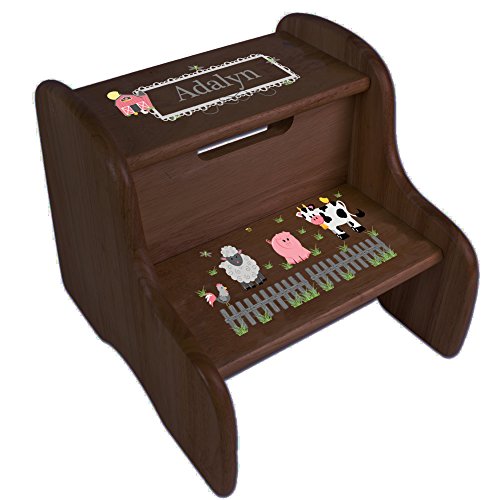 Studio : MyBambino Publisher : MyBambino Binding : Baby Product Product Description Our MyBambino personalized barnyard friends espresso two step stool is a sturdy and rugged. Perfect for bedrooms, bathrooms, kitchens, and anywhere else they want to reach. 0