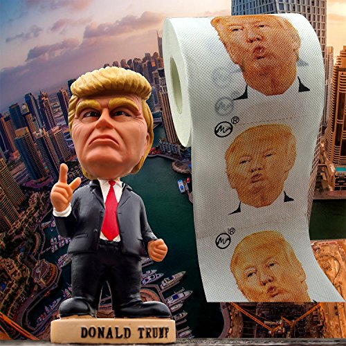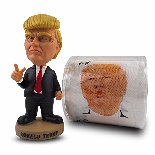 -. Feature : High quality&durable, Expertly hand-crafted, Donald trump bobblehead Campaign Collectors Cute Resin Doll / HUMOROUS: A Donald trump joke toys toilet paper roll that can give you the pleasure from a Presidential Candidate to kiss your A$$. / The Doll-Heavy weight polyresin construction with styrofoam protection.Toilet Paper-It came in a plastic container to keep it preserved or if you just want to keep it in your collection / STRUCTURE: recycled toilet paper have soft and delicate 2 ply tissues and 250 sheets per roll.dump the trump toilet paper products accessories, 100% virgin wood pulp.non-toxic, won't smudge or smear. / A great gag gift: unique gift guaranteed to get a laugh, dump it on your favorite republican. Makes for a funny memorable birthday or christmas gift.