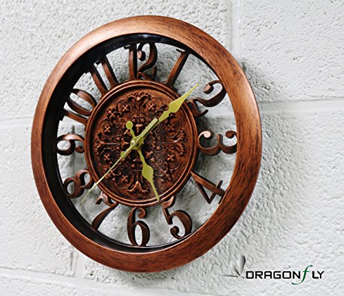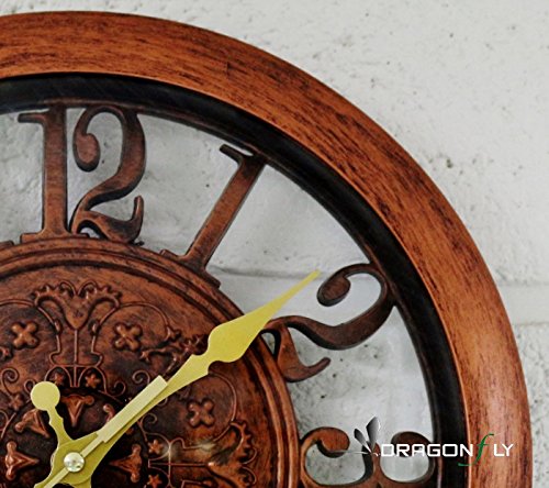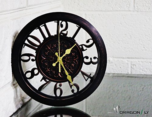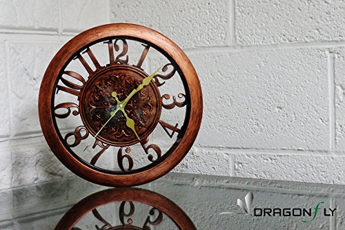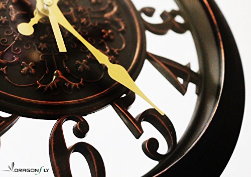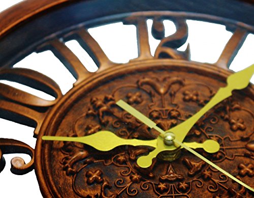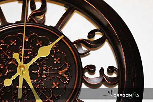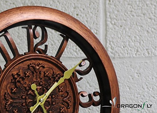 -. Title : 11" Royal Bronze Knight Emblem Simulated Wood Wall Clock, Quartz, ABS Texture, Antiquity European Style