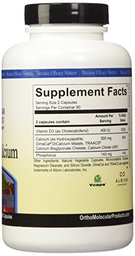 Reacted Calcium from Ortho Molecular contains four different forms of Calcium to reduce the overwhelming affect on any one of the various absorption mechanism. This optimizes the chance for maximum absorption. Vitamin D is known to be responsible for day-to-day maintenance of calcium and mineral homeostasis. Further, vitamin D is proven to support healthy bone density, an important component of strong bones. Ortho Molecular has partnered with Albion, one of the United States foremost manufacturers of chelated minerals. Albions patented chelation technology stabilizes the minerals while creating some of the smallest absorbable minerals available. This is important because larger minerals cannot pass through the intestinal wall as well and therefore are not as well absorbed by our bodies.Feature