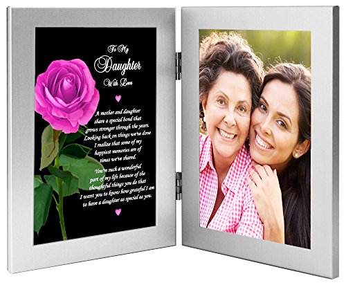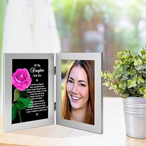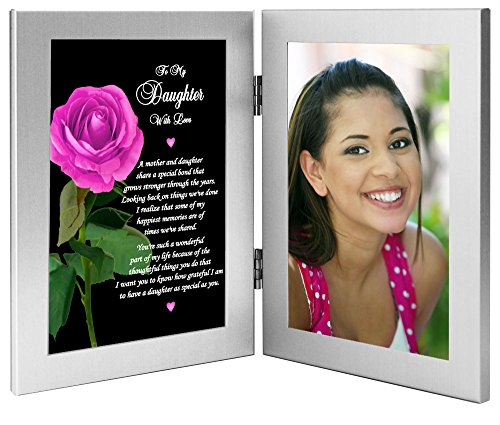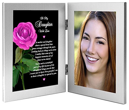Two attached 4x6 inch frames - left frame contains daughter poem card - right frame has area for a 4x6 inch photo of your daughter or a photograph of both of you that is inserted after delivery
