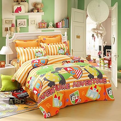 - 4pcs Twin Bedding Set Dimensions: 1x Duvet Cover 68"x86", 1x Fitted Sheet 39"x75"x12", 2x Pillowcases 20"x30"