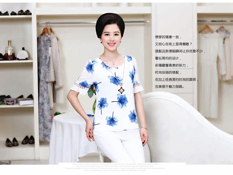 中老年女装夏装短袖T恤中年女装T恤40-50岁妈妈装夏季短袖上衣