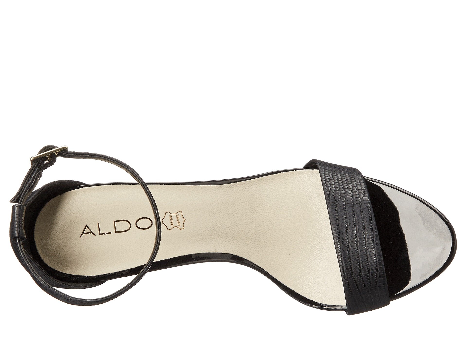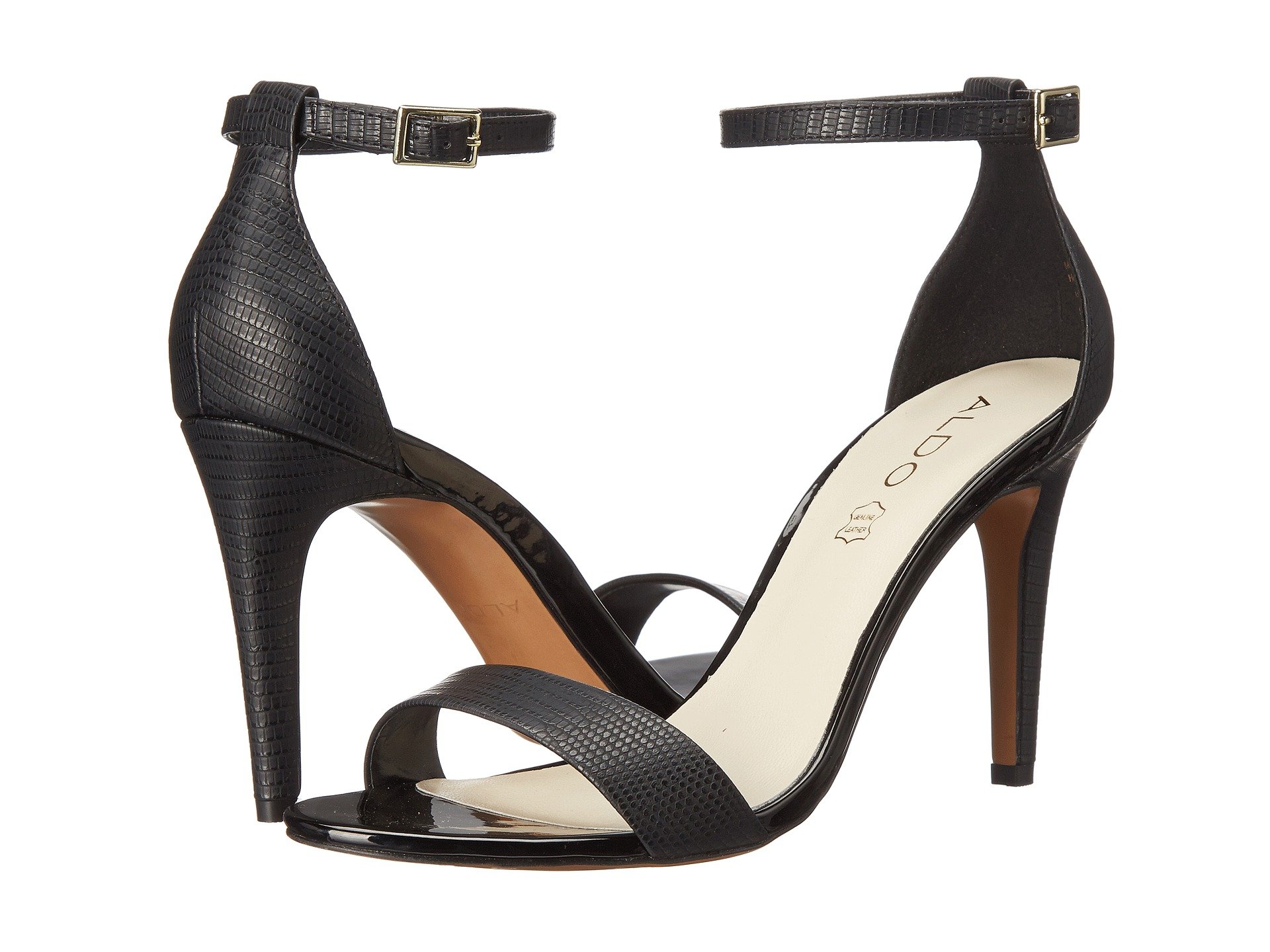 | Product Information SKU: #8646154Delicately crafted and undeniably chic, the ALDO? Ibenama-U is a wardrobe must-have.Reptile-embossed synthetic upper.Adjustable ankle strap with buckle closure.Open-toe silhouette.Synthetic lining.Leather footbed.Wrapped heel.Synthetic outsole.Imported.Product measurements were taken using size 40 (US Women's 9), width B - Medium. Please note that measurements may vary by size.Weight of footwear is based on a single item, not a pair.Measurements: Heel Height: 4 in Weight: 8 oz |