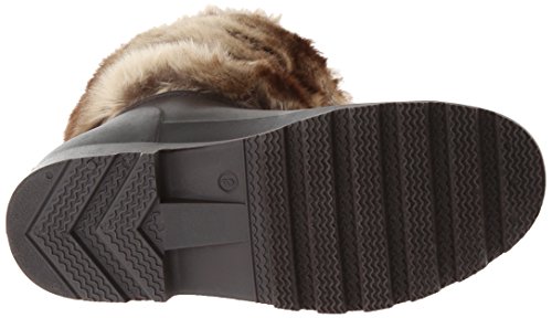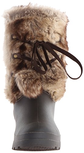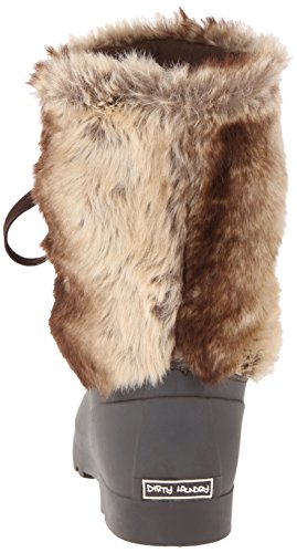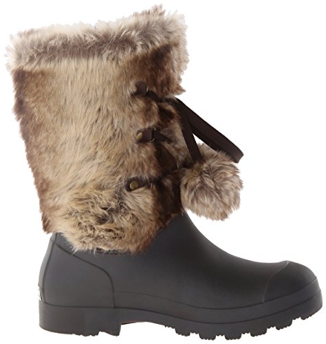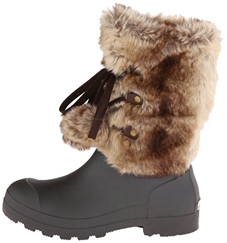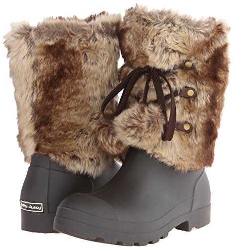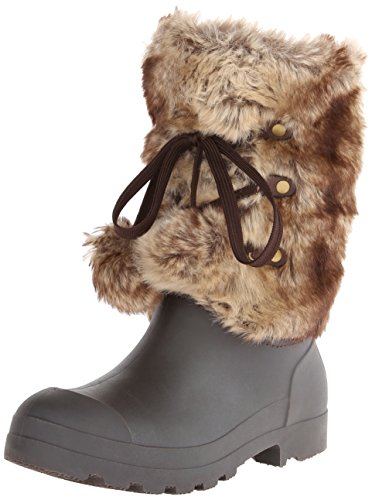 Stylish rain boot featuring a faux-fur shaft with decorative laces